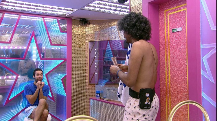 Enquanto João Luiz cuida do cabelo no banheiro, Gilberto faz companhia ao brother e eles lembram a trajetória do doutorando em Economia, que está no .