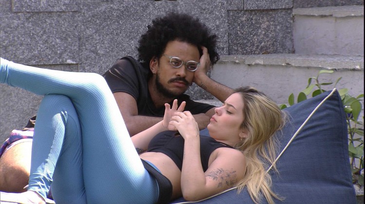 Agora estão apenas Viih Tube e João Luiz conversando no gramado do BBB21, quando a youtuber desabafa: "Eu estou com um sentimento de que, posso estar exagerando, mas eu sinto como se a casa toda fosse se juntar para tirar, não tirar, mas tentar tirar de um em um nossos cinco". O brother concorda e ela segue: "Tipo essa semana vai ser a Juliette o alvo". O brother intervém: "Ou eu".