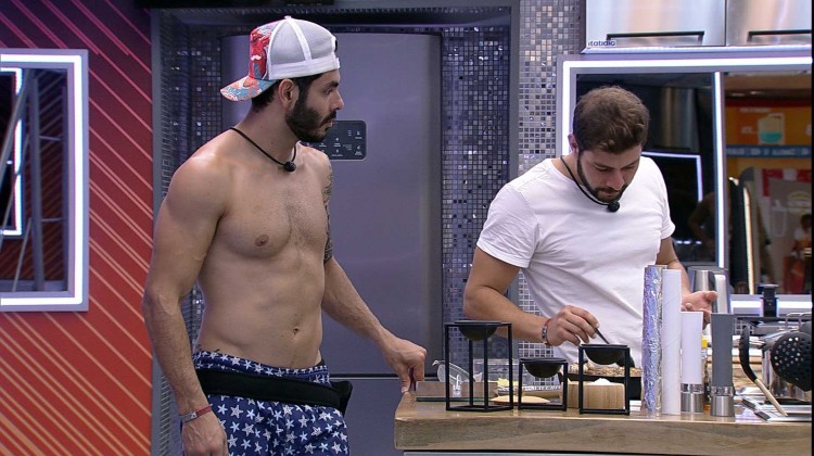 Na cozinha do VIP do BBB21, Caio encontra com Rodolffo, que prepara a refeição. O brother logo puxa um assunto sobre a formação de Paredão que deve acontecer neste domingo, 14/03: "Minhas chances de ir para o Paredão agora estão grandes. Grande, mas grande mesmo. Agora que eu fiquei sabendo do voto do Fiuk..."