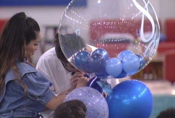 Juliette, Arthur e Caio estão na área externa da casa quando o goiano brinca com os balões que e...
