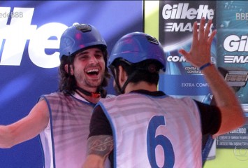 Na área externa da casa, Sarah e Gilberto conversam a respeito do jogo. O pernambucano diz que já...
