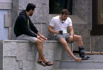 O Líder Rodolffo e Caio estão na área externa do BBB21 próximo ao Quarto do Líder. Os dois con...