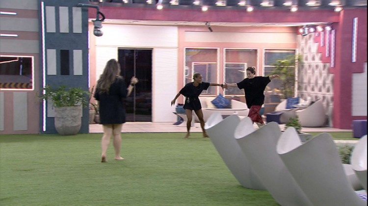 Aline Wirley, Amanda e Bruna Griphao estão oficialmente na final do BBB 23! Na madrugada após a Eliminação de Larissa, o trio recebeu passaportes para a final e champagne para comemorar. Um tempo depois, as sisters seguem para o jardim da casa.
