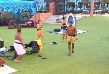 Após Davi atender ao Big Fone na tarde deste domingo (3), Raquele ri e agradece pelo baiano ter co...